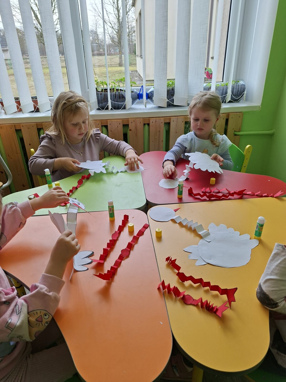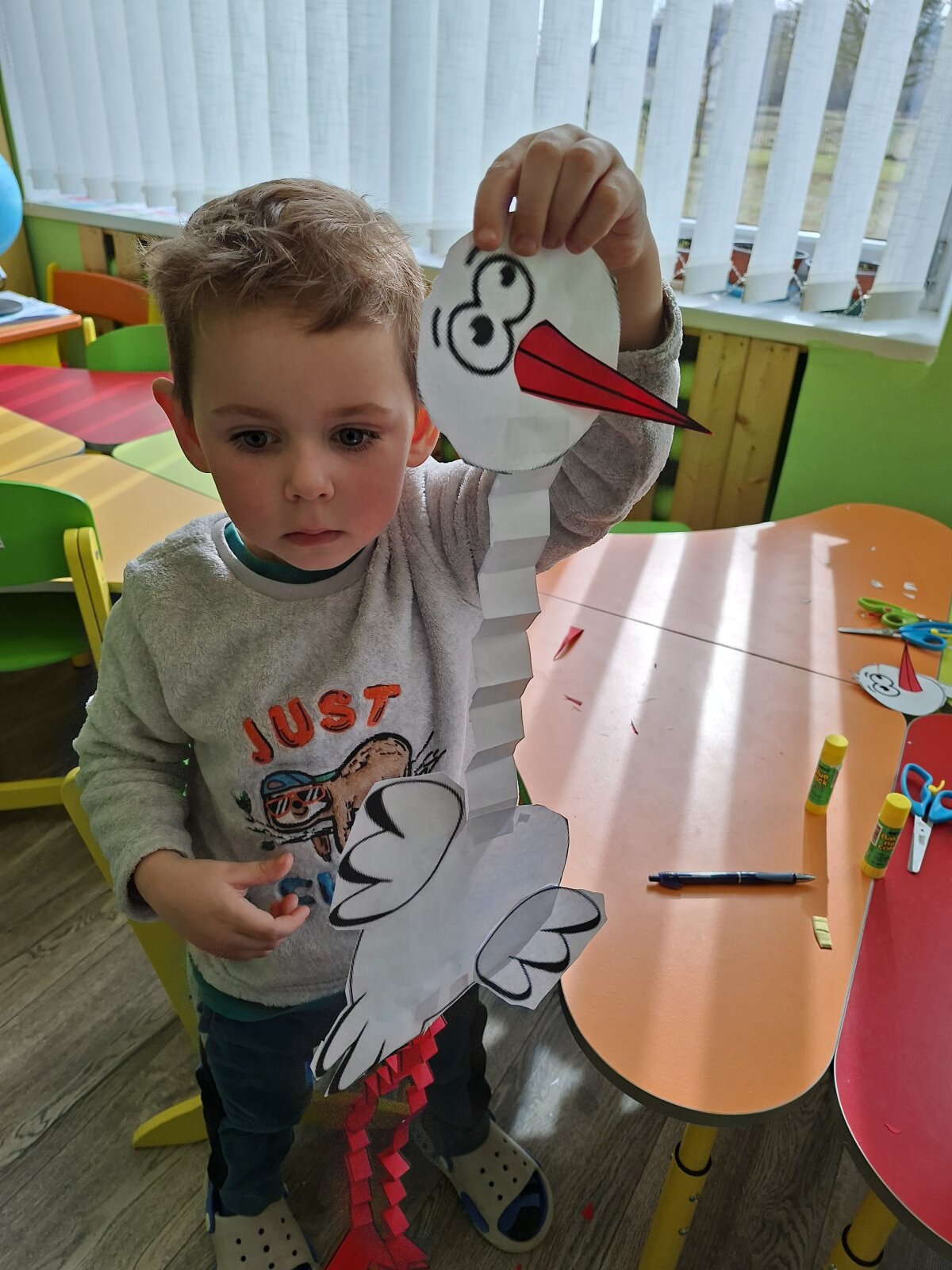 Veiklos metu vaikai taip pat kūrė gandrus – kiekvienas stengėsi pagaminti kuo gražesnį ir išraiškingesnį darbelį. Pagamintais darbeliais mažieji papuošė savo grupę, kuri tą dieną prisipildė pavasariškos nuotaikos ir kūrybinio džiaugsmo.